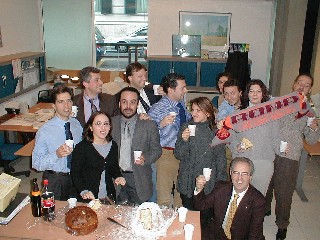 Er Lupacchiotto festeggia 28 anni con i colleghi, che si mangiano in